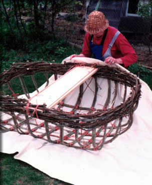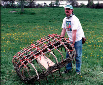 Paul is pulling the coracle basket out of the ground. You