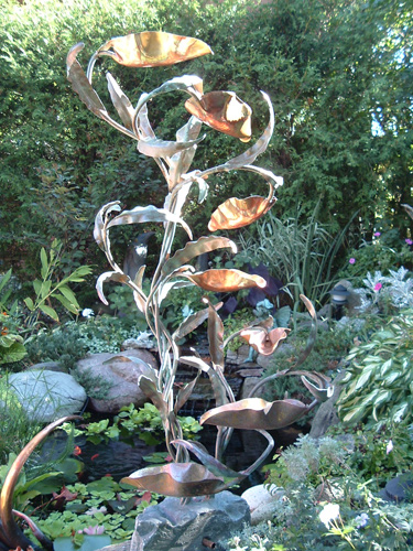 leaves and copper stems. The water is pumped up to the highest