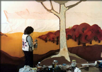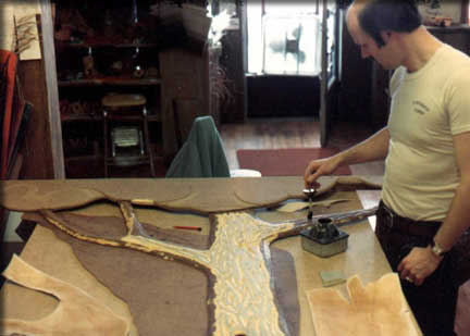 Paul is brushing on the bad smelling contact glue. Note