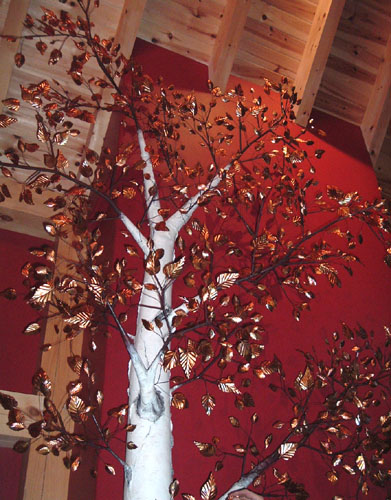 A 14' BIRCH TREE SCULPTURE with copper leaves